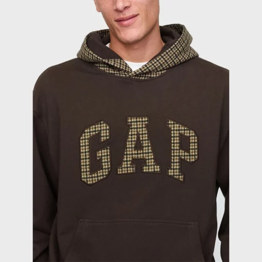 Material: Fleece Fabric Front: Pullover Style Collar: Hooded Style Collar Cuffs: Rib Knitted Cuffs Color: Brown Gap Logo Houndstooth...