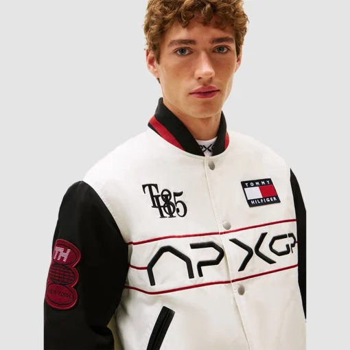 Formula 1 The Movie 2025 Tommy Hilfiger Racing Varsity Jacket – White and Black It...