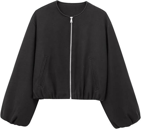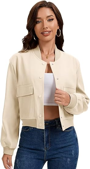 Women’s Varsity Jacket – Casual Zip Up Cropped Bomber Coat with Welt Pockets