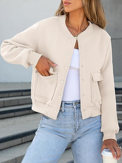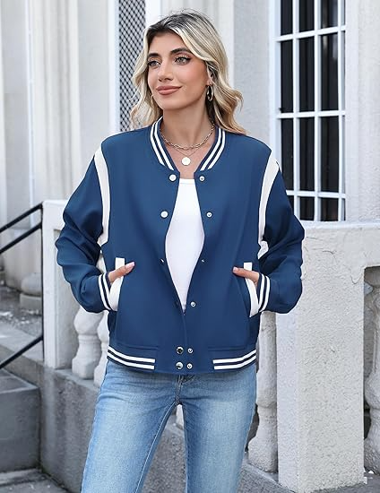 Women’s Varsity Bomber Jacket | Lightweight Casual Button Down Fall Fashion 2025