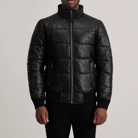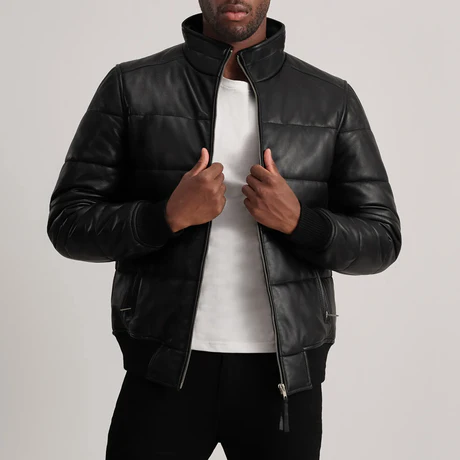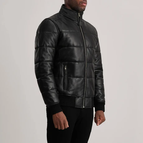 Lucas Black Leather Men's Puffer Bomber Jacket