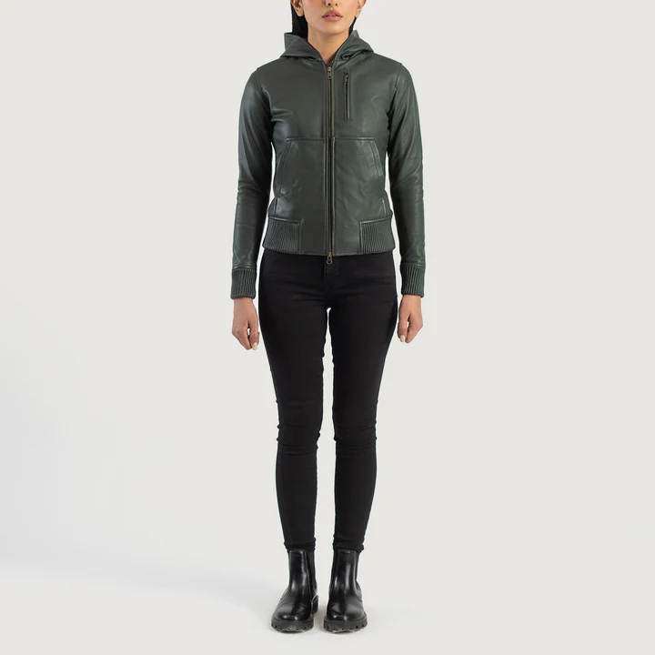 The hooded collar delivers both functionality and a modern edge, while the front zipper closure ensures ease and versatility in layering. With three practical outer pockets for daily essentials and two secure inner pockets for valuables, this jacket is as functional as it is fashionable.
