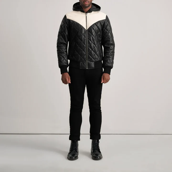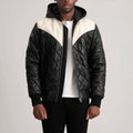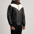 Norman Black Hooded Men's Bomber Leather Puffer Jacket