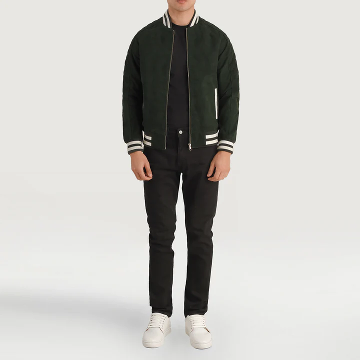Pascal Men's Green Suede Varsity Jacket