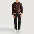 Make a bold statement with this Maroon varsity leather jacket, crafted from 100% real sheepskin leather with a smooth semi-aniline finish for a soft, premium texture. Designed to balance timeless varsity style with modern craftsmanship, this jacket is perfect for both casual wear and standout street looks.