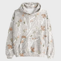 The pullover closure ensures an easy, relaxed fit while the rib-knitted collar and cuffs add a classic touch, enhancing durability and maintaining shape wear after wear. Its bold white camo pattern gives a modern, street-style edge that makes it versatile for everyday outings, workouts, or lounging.